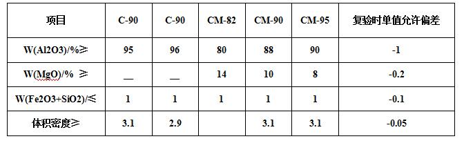 鋁質(zhì)按體積密度分為C-90、C-95兩種